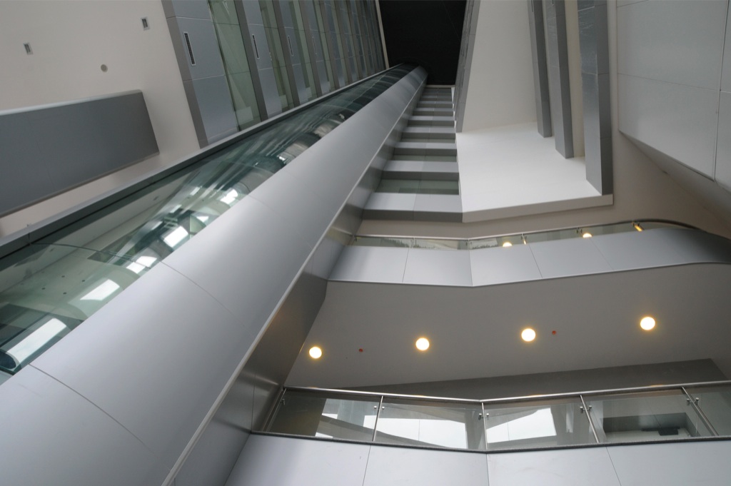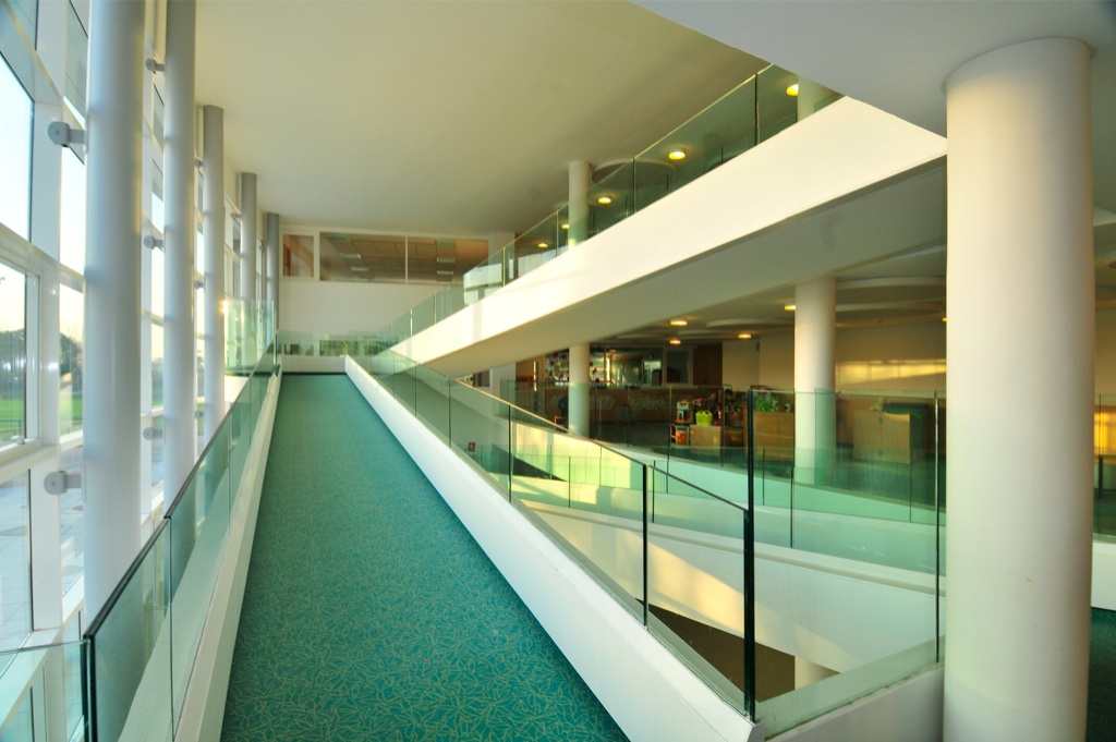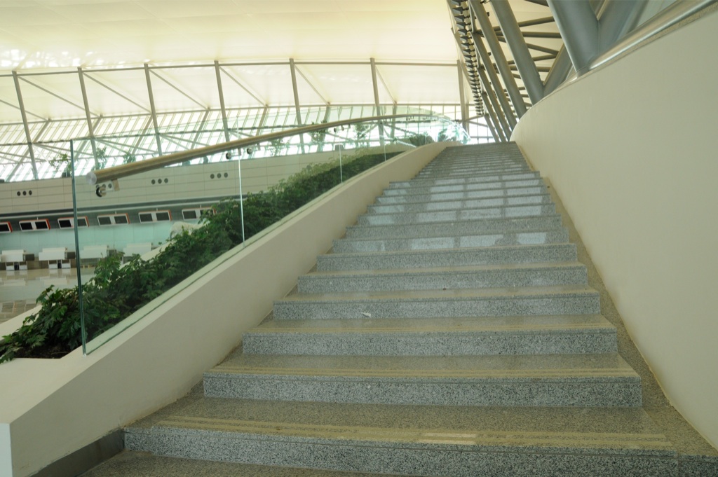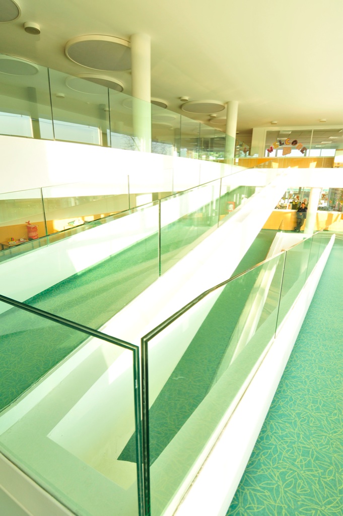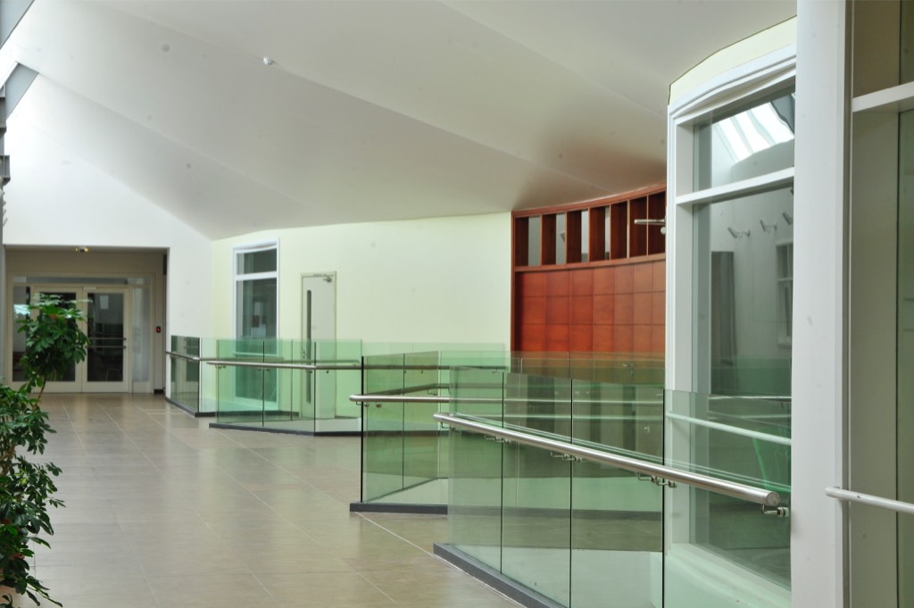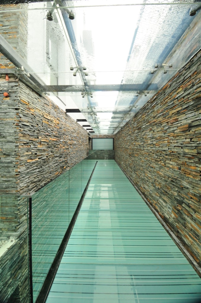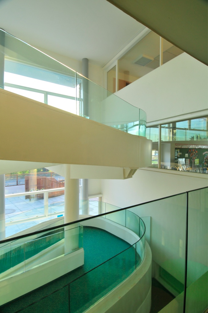 Las barandas se proponen sin estructuras metálicas aparentes, para que no exista interrupción visual y se pueda disfrutar al máximo del paisaje circundante. Contribuye a potenciar el resultado la utilización de "cristales ultraclaros", totalmente transparentes, sin ningún tinte de color en su masa.