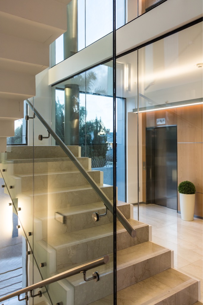 Impresiones por serigrafía en los cristales y soportes metálicos de cuidado diseño aportan asimismo un toque único, especial, distintivo y distinguido, convirtiendo a las barandas en elementos modernos, funcionales y altamente estéticos, que engalanan cualquier obra.