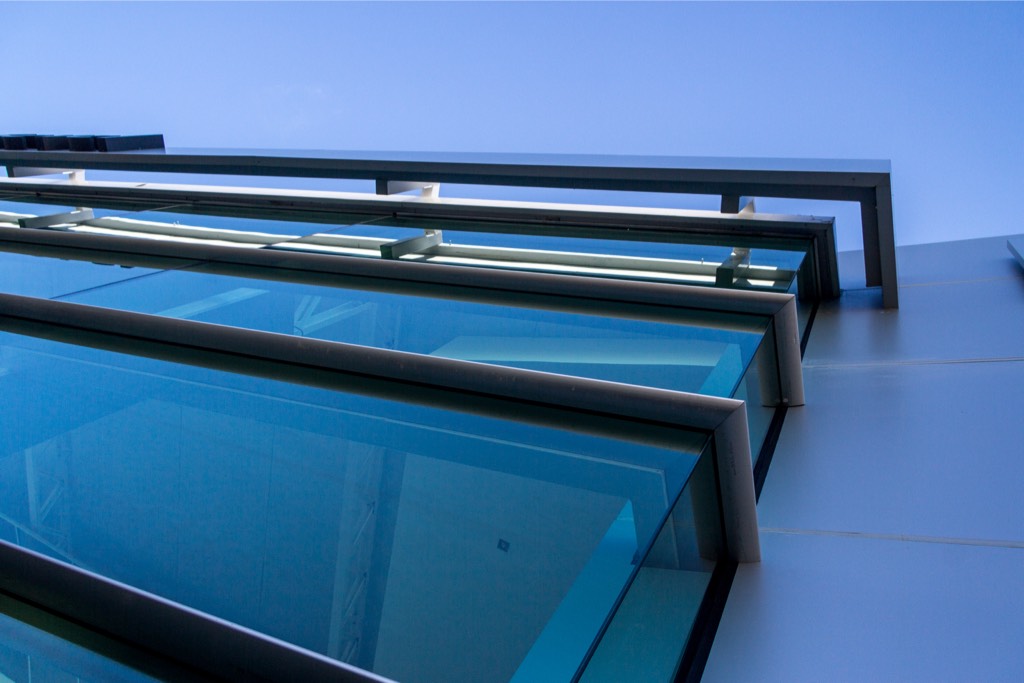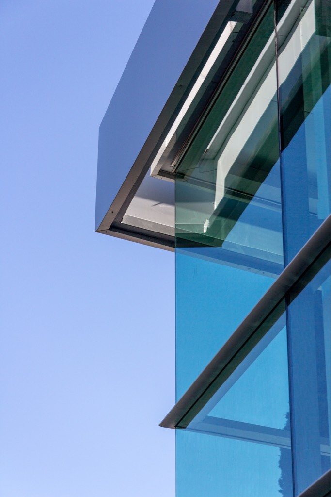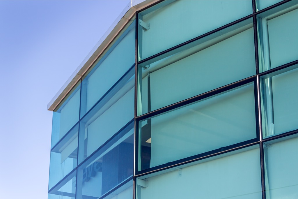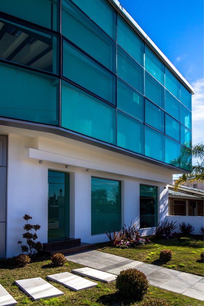 - Curtain wall con cristales templados verdes 8 mm.