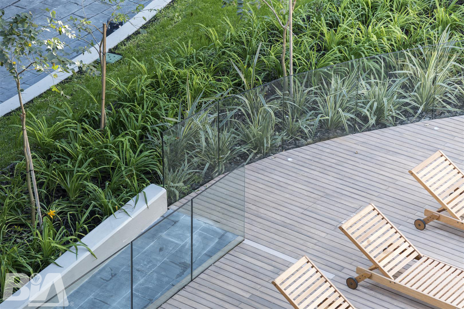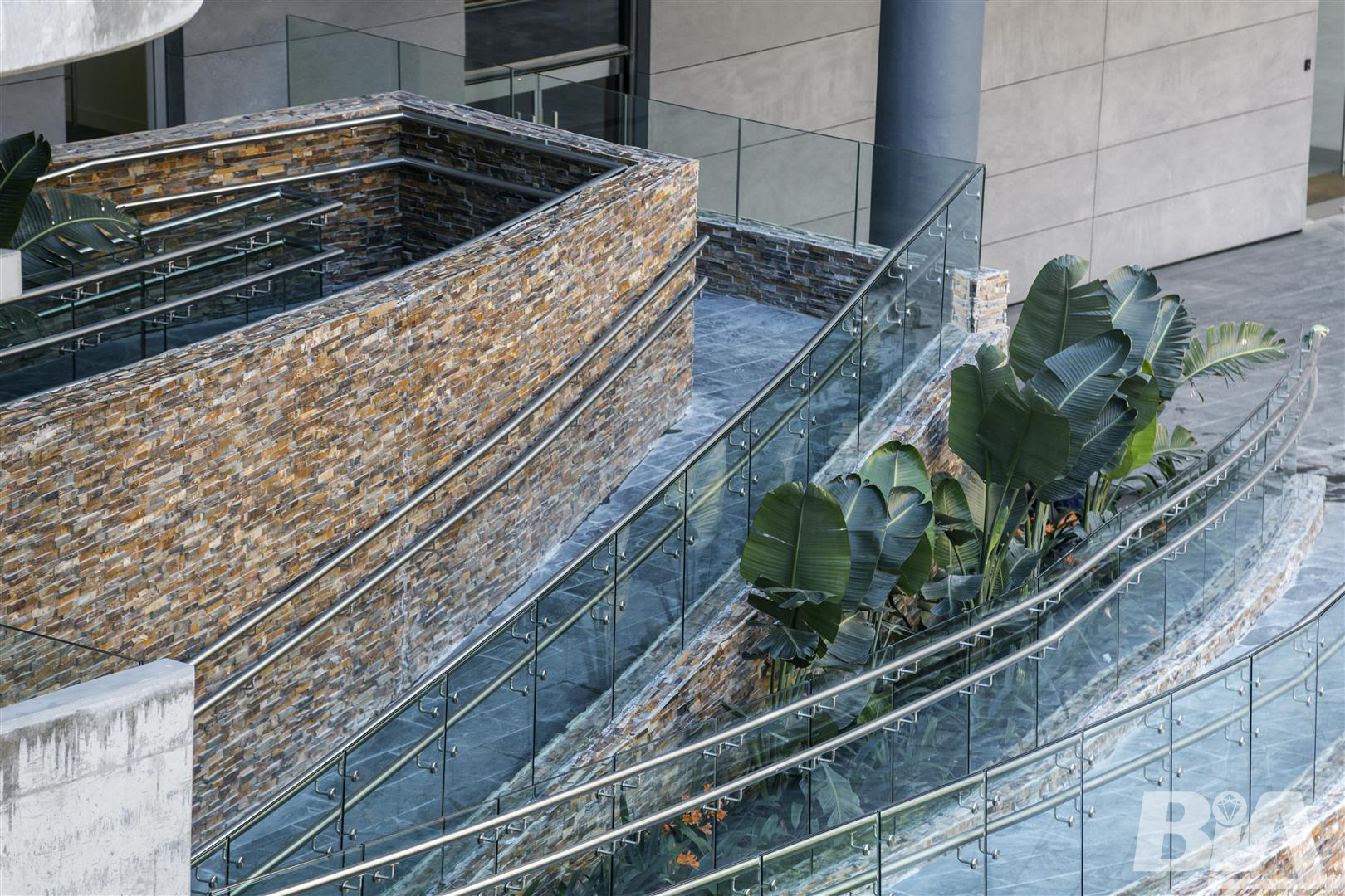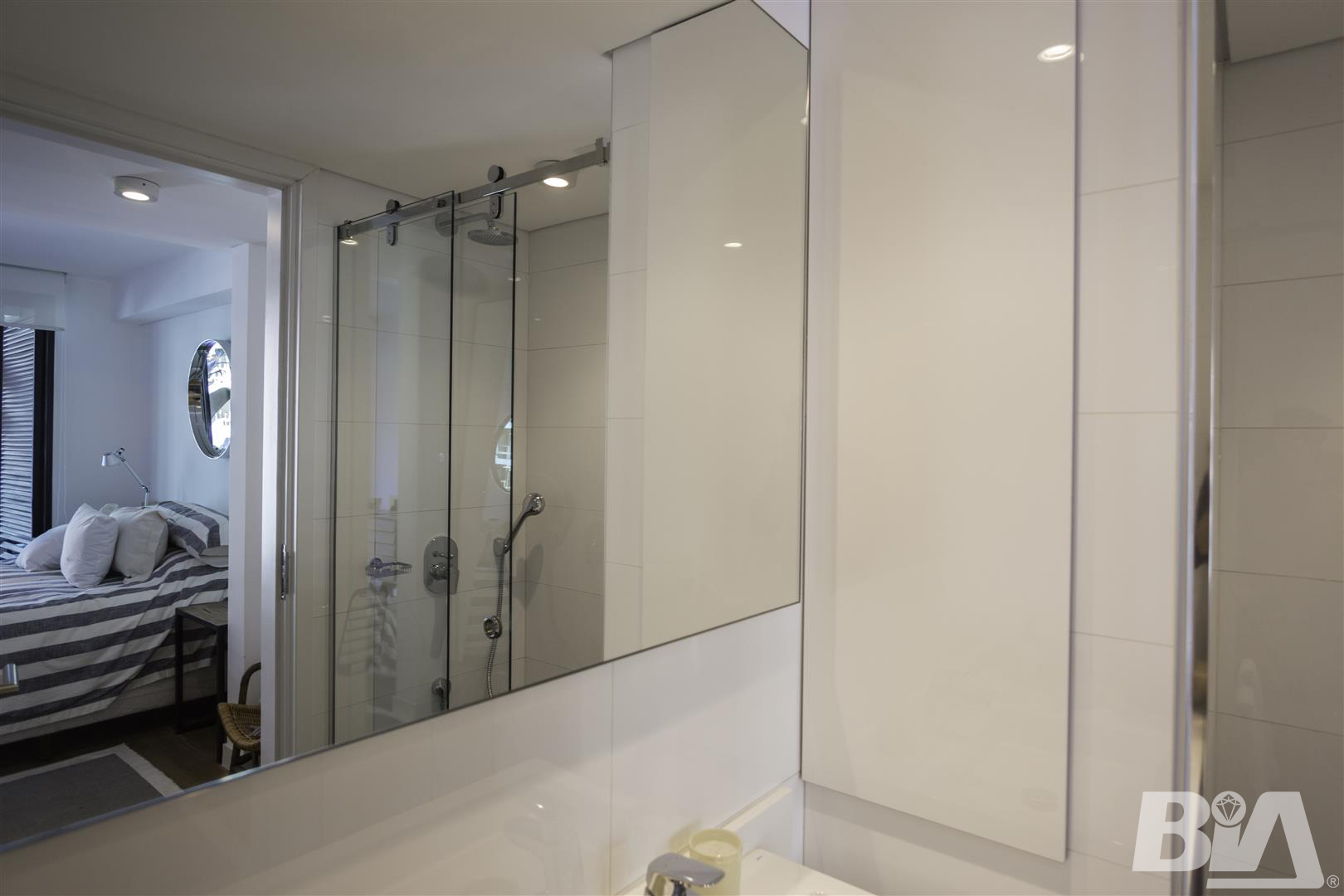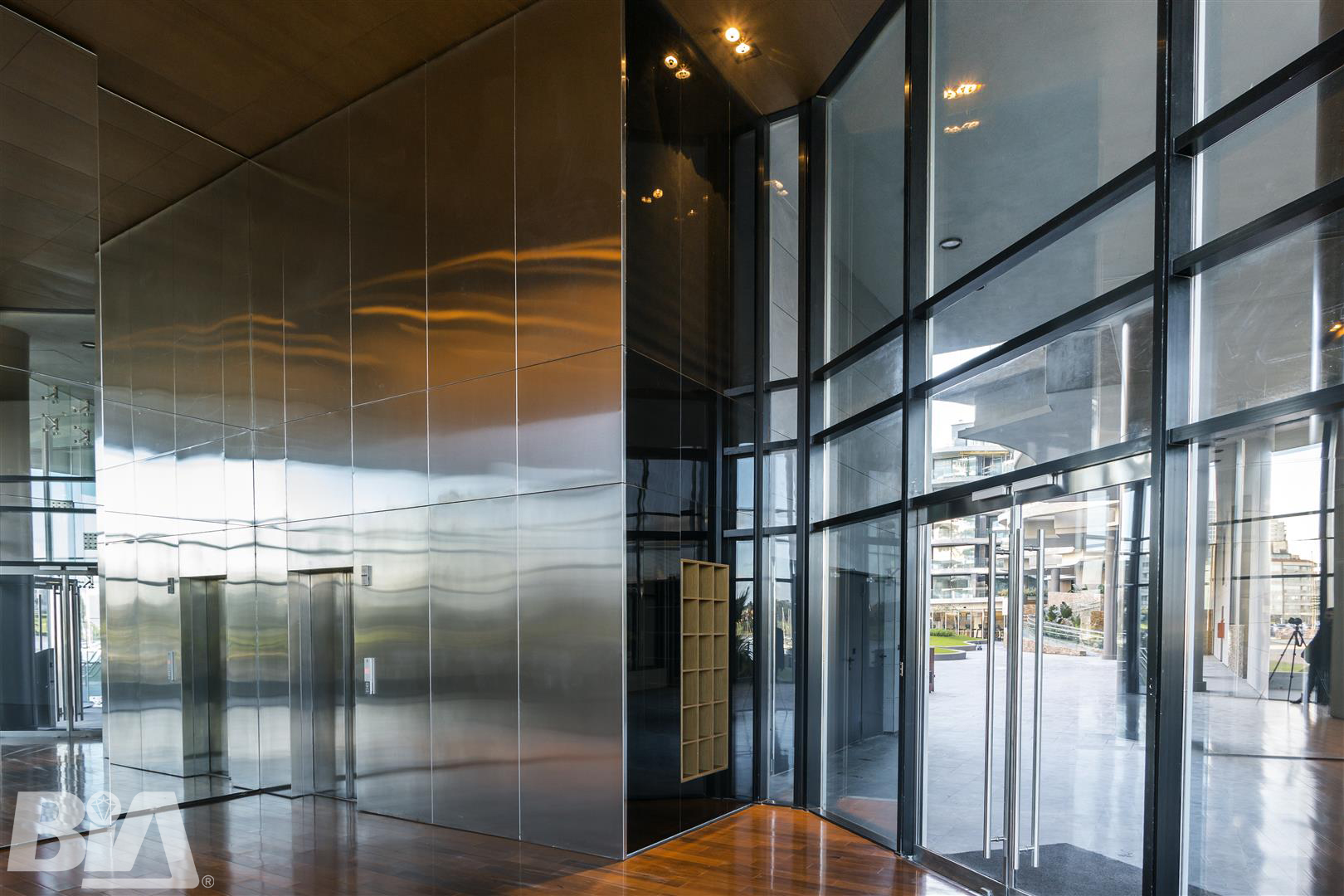 - Productos DVH: Cool Lite neutral SKN 154 8 mm. templado #2, cámara negra 12 mm., Laminado incoloro 44.2. BARANDAS INTERNAS y en ATICOS: Laminados templados 10+10 mm. unidos con PVB 0.76 mm. con empotramiento en perfil de acero pasamanos dobles en a. inoxidable 316. PALLIERS: Espejos incoloros laminados 5+4 mm. Glass Splash 6 mm. color negro. Frentes de acceso en Incoloro laminado 10 mm. con Puertas templadas con herrajes HDL y manijones de a. inoxidable.
