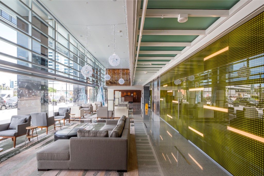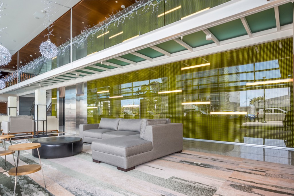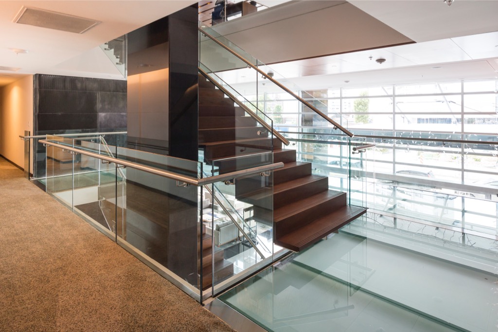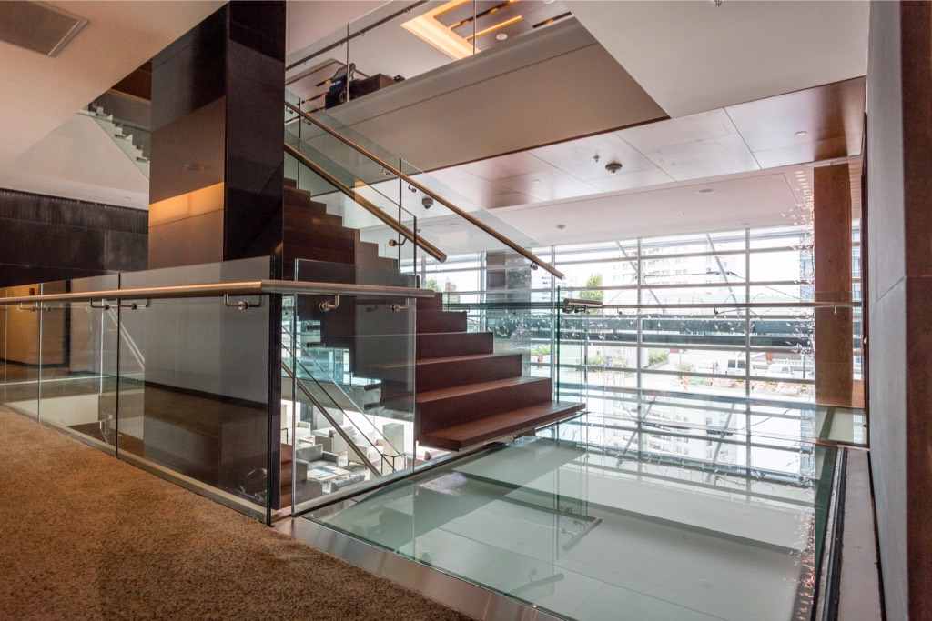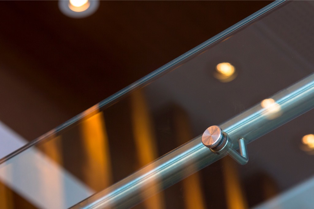 - Serigrafía en revestimientos interiores; barandas y puentes en cristal templado laminado de seguridad.