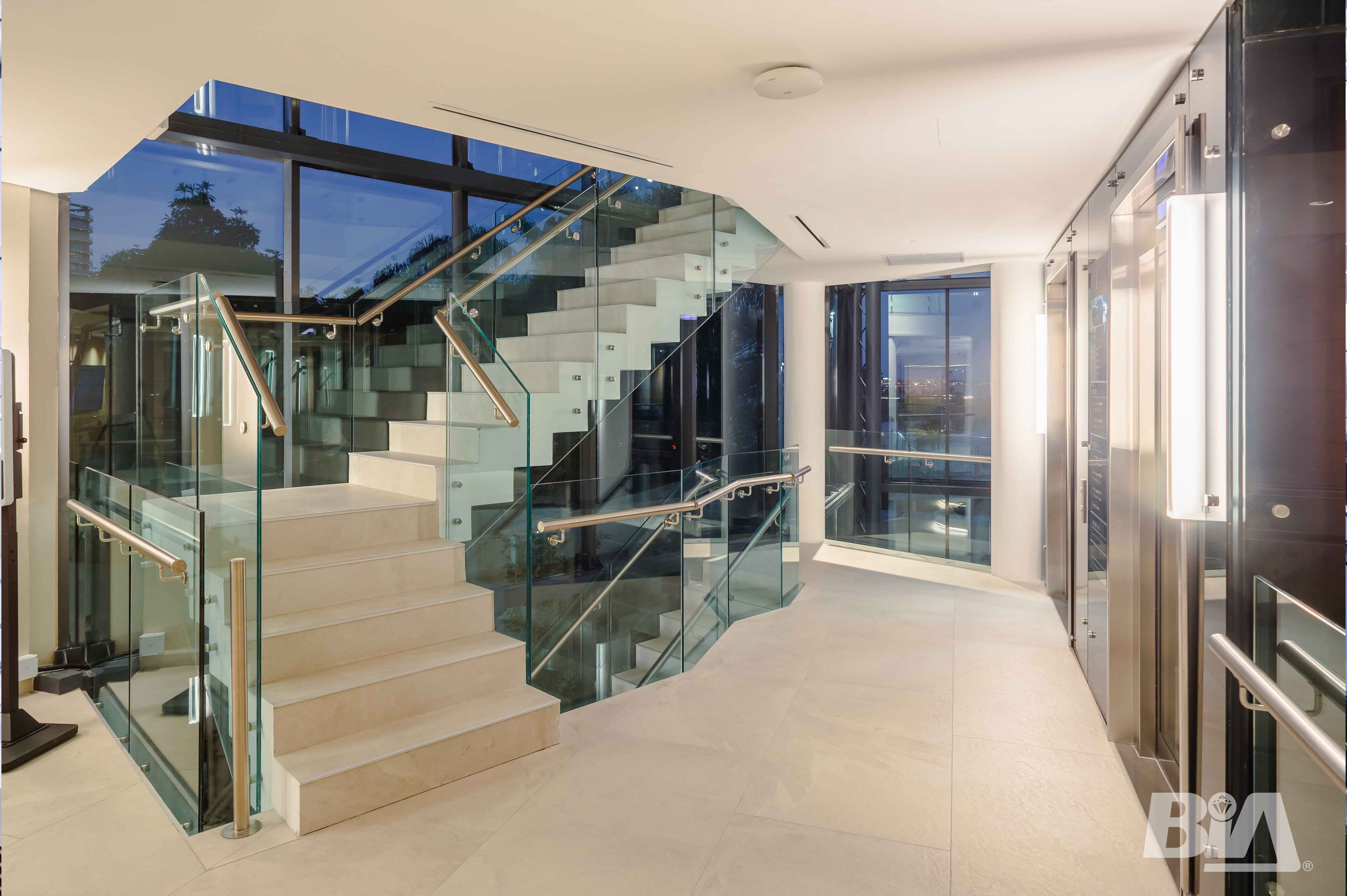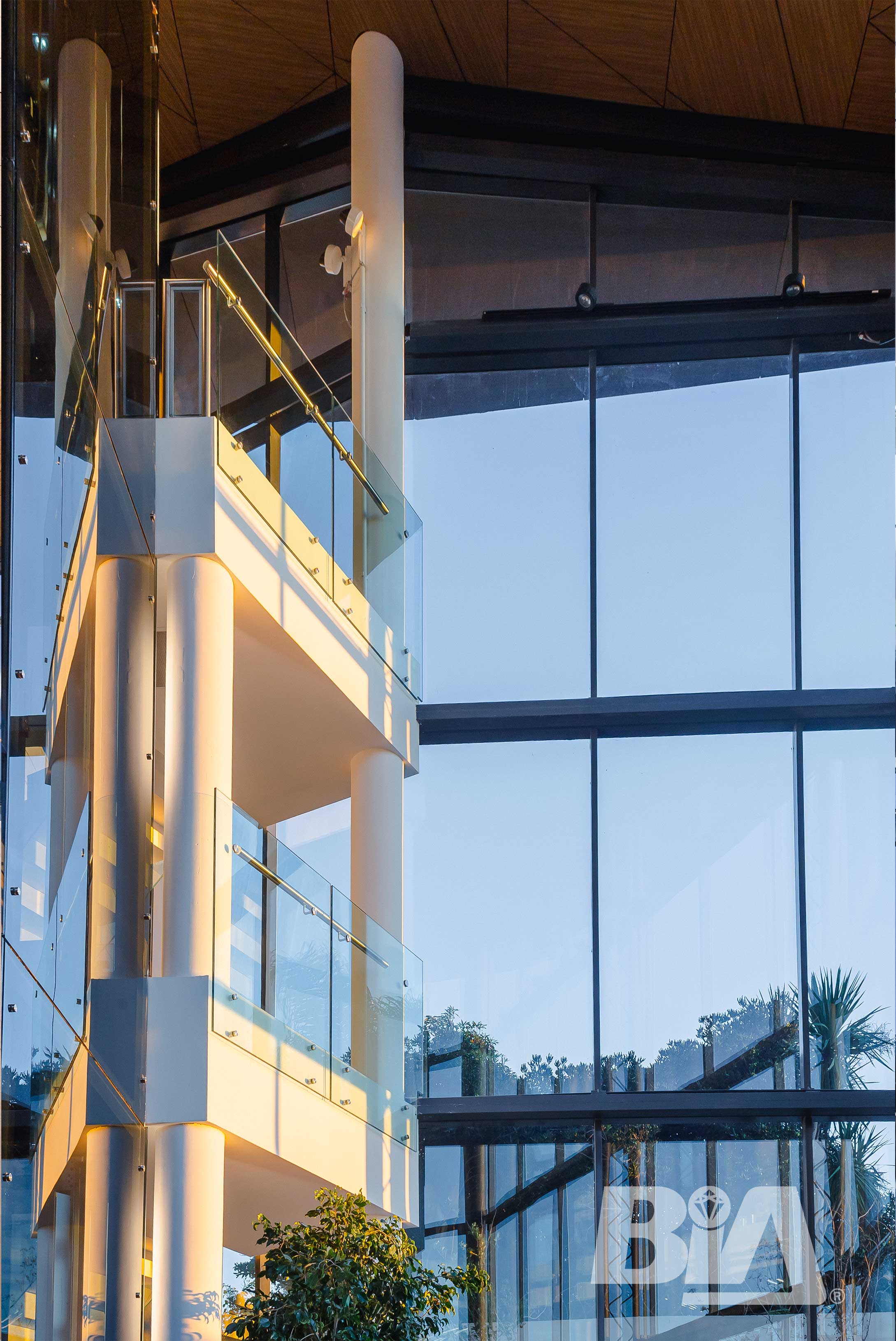 - Barandas y ducto ascensor con Laminados templados estructurales con SentryGlas®.