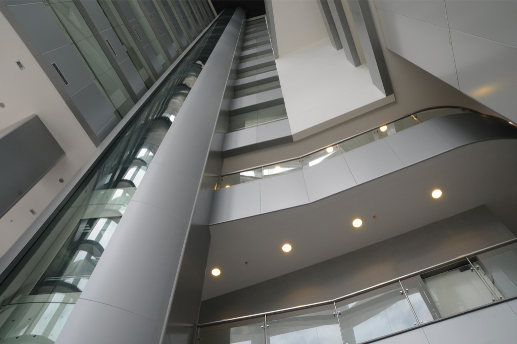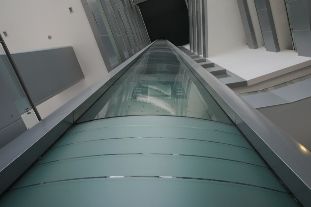 - Barandas cristal templado 10 mm.; cristal laminado curvado en ascensor