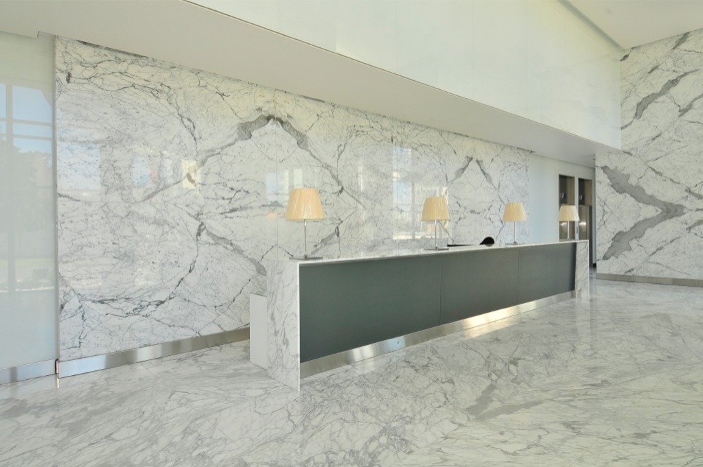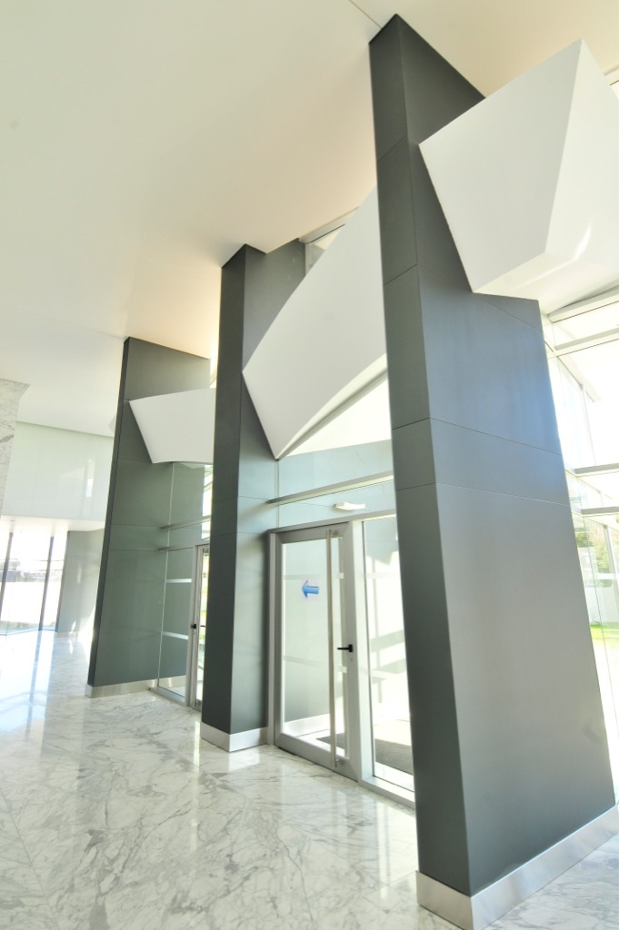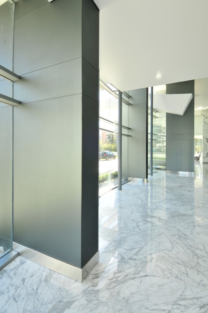 - Revestimiento en Glass Splash blanco. Revestimientos en espejo Opacid gris. DVH en aberturas. Barandas de cristal laminado.
